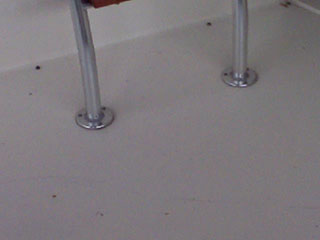 The second photo depicts water intrusion into a balsa cored cockpit sole on a sportfishing vessel.