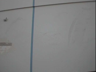 This vessel was washed ashore into a stand of trees by a tidal surge from a recent hurricane. Repair facilities have a difficult task in preparing estimate for repair when the extent of damage cannot be determined by conventional means without destructive testing (drilling, cutting, etc.) and even then the full extent of damage may not be known until repairs are underway. Increasingly, insurance companies are allowing for the expense of thermal imaging to accurately determine the extent of damage to a vessel. The following photos clearly depict the delamination suffered in one of many areas on this vessel.